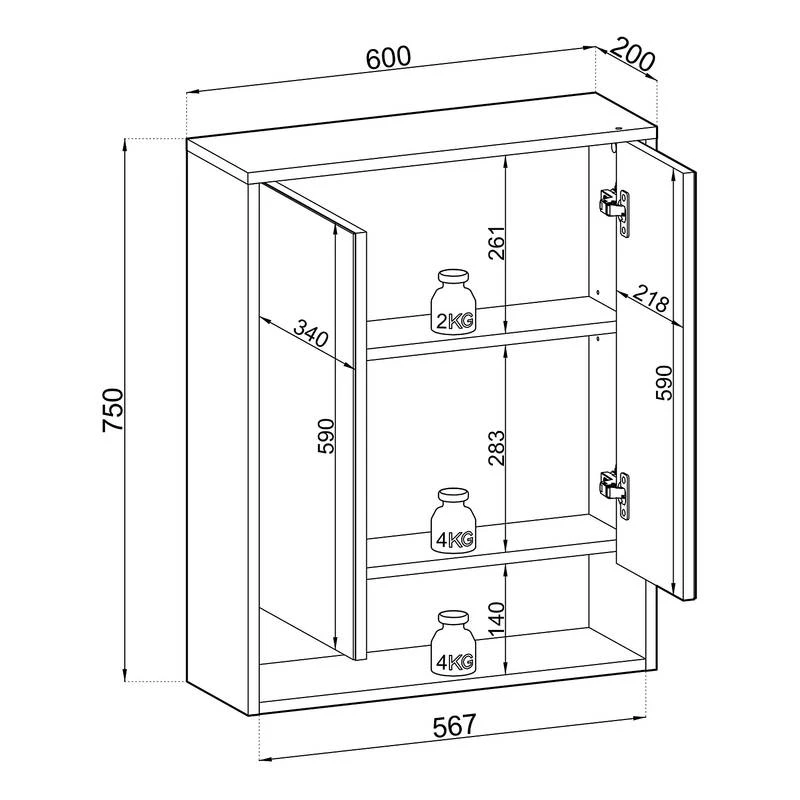 - Charge maximale des étagères : 3 kg
