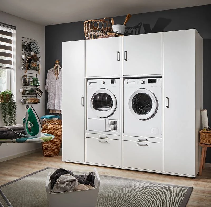 - Ensemble composé de 2 armoire pour machine à laver, 2 colonnes de salle de bain et 2 caissons hauts