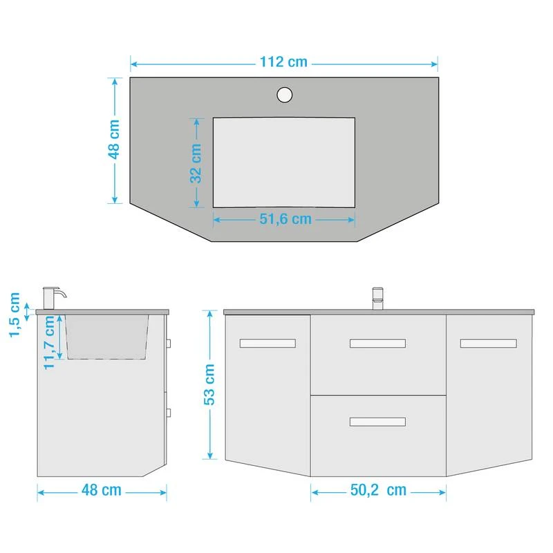 - Contenu de la livraison : meuble avec vasque sans accessoires
