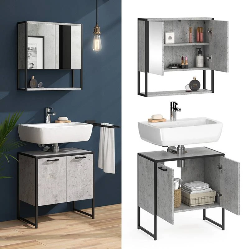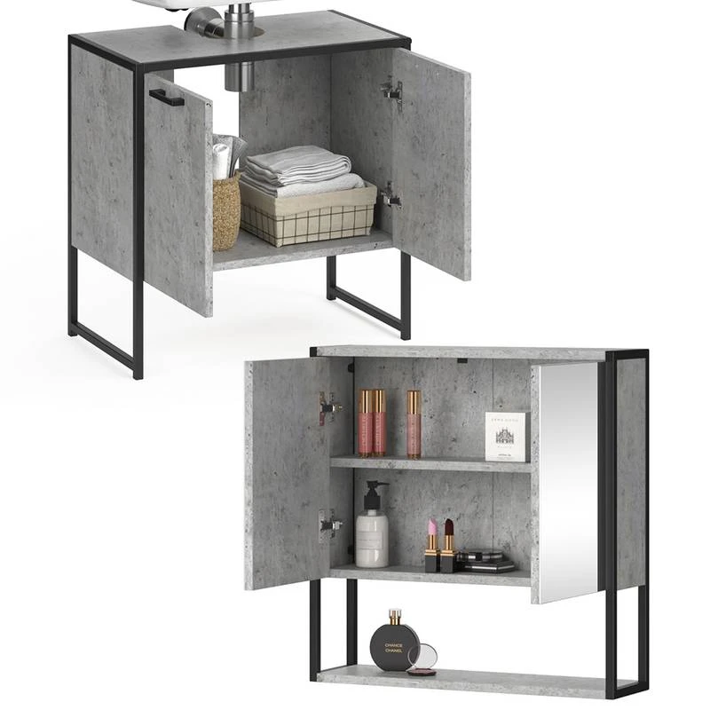 - Contenu de la livraison : • 1x armoire de toilette • 1x meuble sous-vasque Décoration non incluse