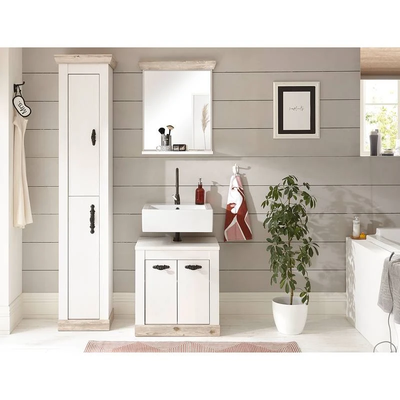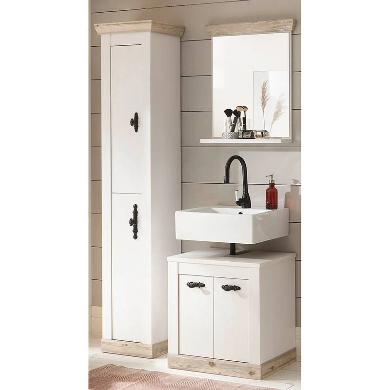 - Contenu de la livraison : Ensemble de salle de bain comprenant 1 meuble sous lavabo, 1 colonne de salle de bain et 1 miroir