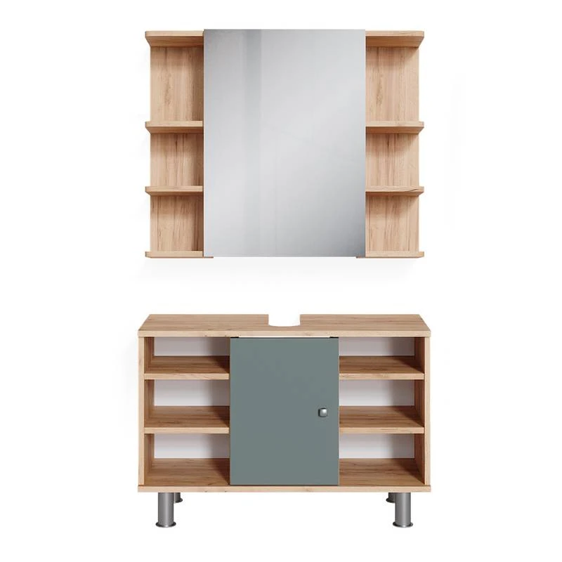 - Contenu de la livraison : • 1x armoire de toilette• 1x meuble sous-vasque Décoration non incluse